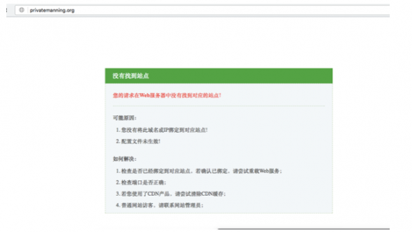Les sites Web originaux de la campagne de soutien, standwithbrad.org et bradleymanning.org sont tous deux en panne. Freebradley.org ressemble à ceci :