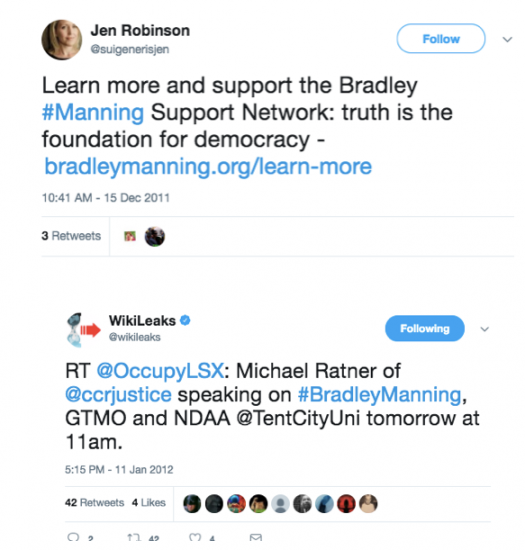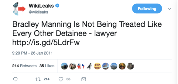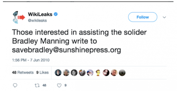 On peut observer cela dans les tentatives constantes de minimiser les efforts de Wikileaks pour défendre et organiser le soutien à Chelsea Manning et autres lanceurs d’alertes.